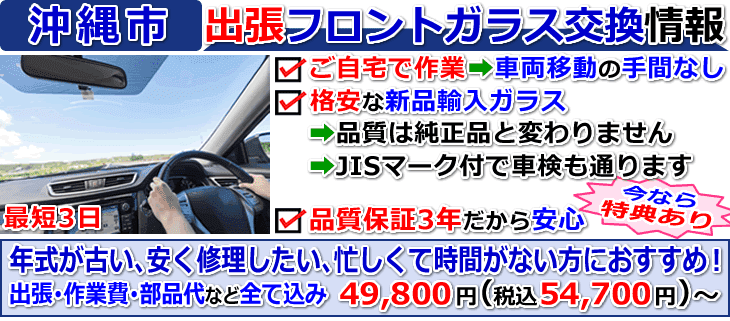 沖縄市の出張フロントガラス交換サービスの情報です。